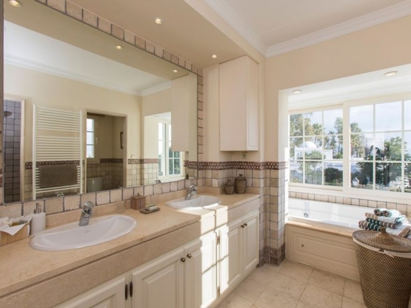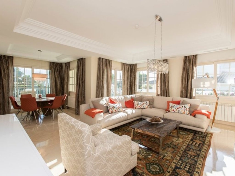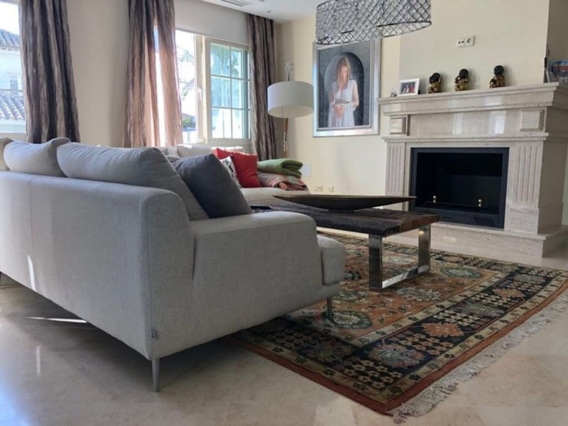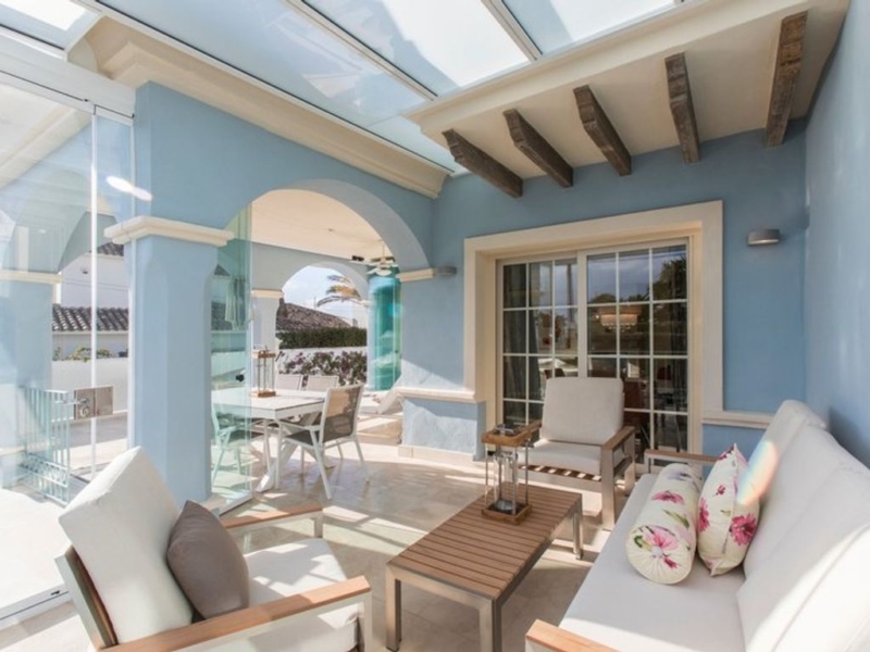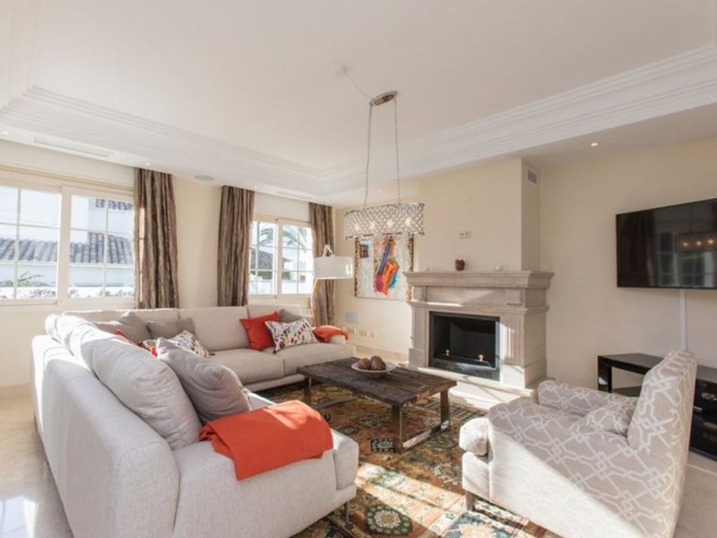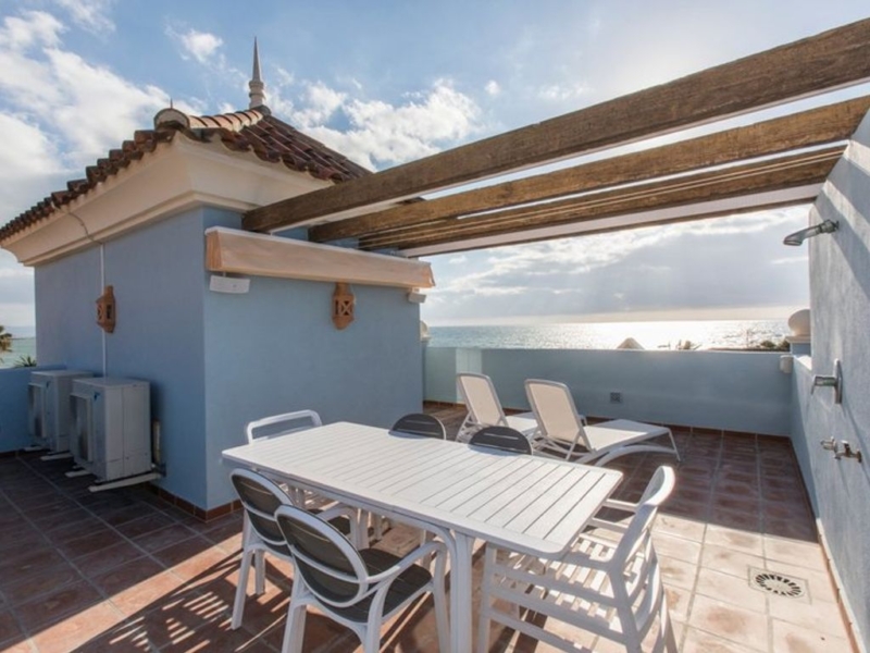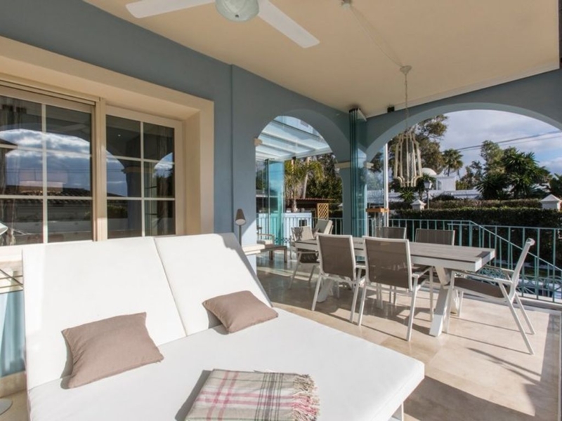 First line beach in Puerto Banús: spacious and bright semi-detached villa a few steps from the sea. Located between the famous Puerto Banús and San Pedro. It offers 4 bedrooms, 4 bathrooms and separate utility rooms in the basement.