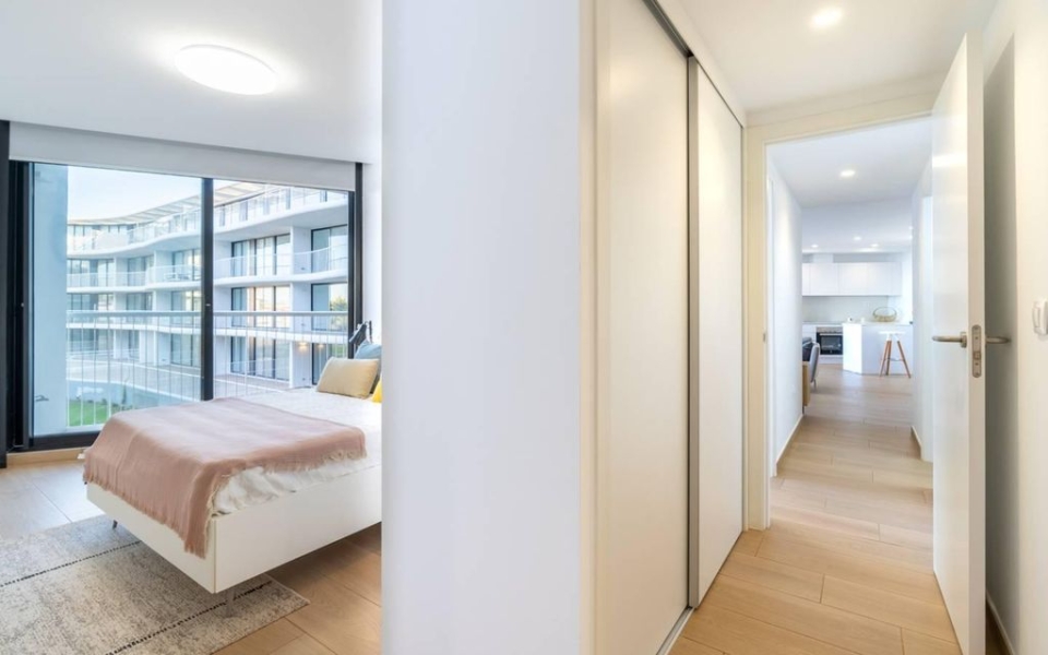 The homes offer spacious and open spaces, with an open kitchen with an American bar and a living room with direct access to the terrace. The kitchen is delivered furnished and equipped with an oven, hob and extractor hood. The bathrooms are equipped with a built-in shower. with a wall-mounted shower head and a synthetic material shower tray, as well as sink units. The apartment has an armored door and double glazed windows for perfect noise and temperature insulation, air conditioning and fitted wardrobes. Within the urbanization, there are four blocks with three floors, plus a basement with garages and storage rooms. Each block has an elevator. In addition to large green areas that surround the community pool, pergolas and fully fenced for greater security.