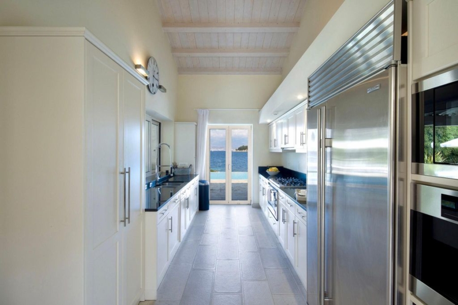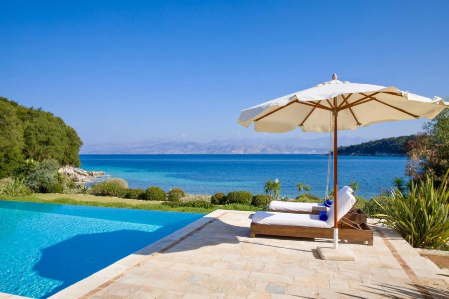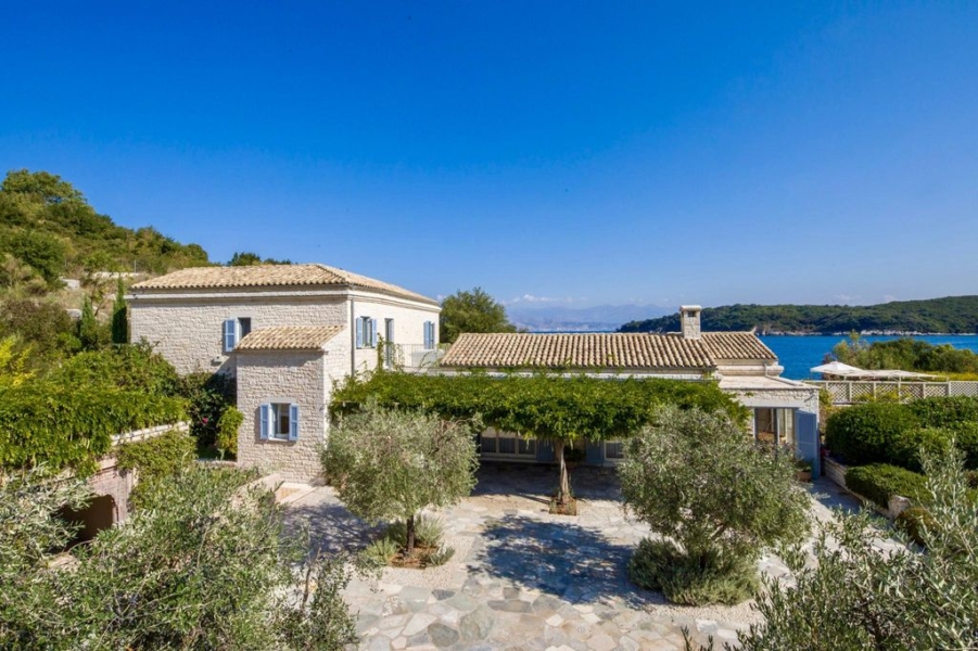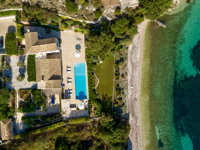 Beautiful white pebble beach, as well as private boat mooring, on the exclusive north east coast of Corfu.