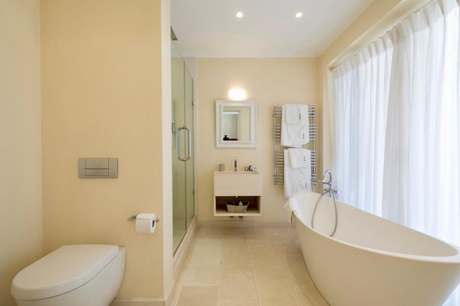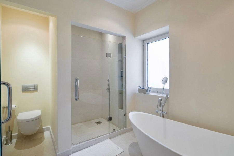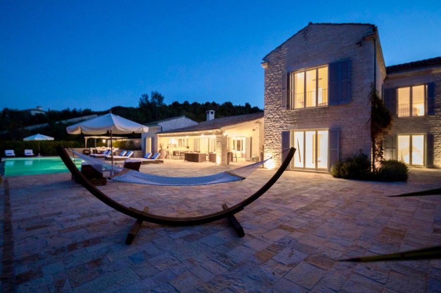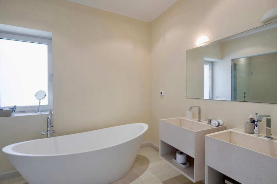 Upon entering the villa into the spacious living room, the views of the sea are immediately noticed through the wide balcony doors, which also exit onto the several outdoor terraces. The separate kitchen area is fitted with luxurious custom cabinets, with high market appliances. All of the five double bedrooms in the villa face the views, and offer access to the outdoor living, either through balconies or terraces.