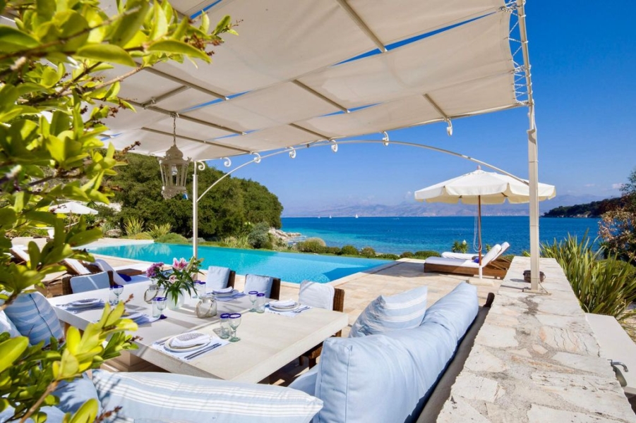Between the bays of Avlaki and Kassiopi, the villa has been exquisitely designed to marry traditional Corfu architecture with the comforts of luxury living.